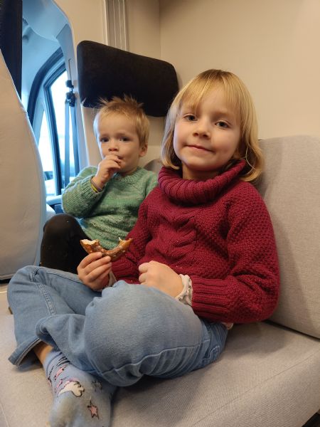 - Reklame for FDM "På vej", som sovende barn i bil, sammen med sin bror, januar 2024