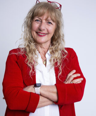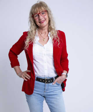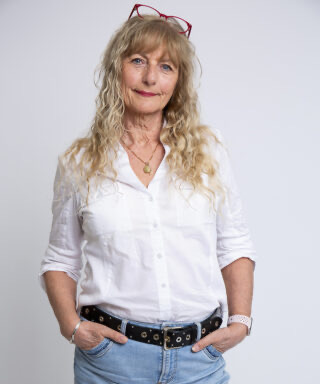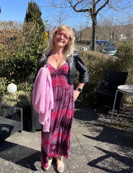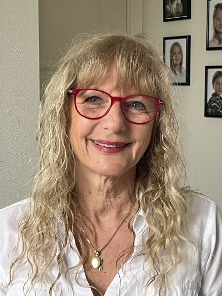 Glad og smilende med et glimt i øjet. Altid haft fuld fart på. Jeg er en aktiv pensionist, efter at have været sekretær for 10 fysioterapeuter i 30 år.